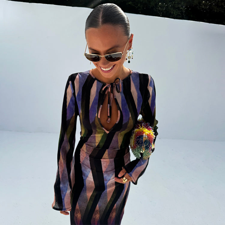 Our bestselling plisse in a new colourway! With a bold zig zag print under a range of autumnal tones in a soft stretchy fabric that skims the curves and falls to the ankle. It comes with a black slip to layer underneath (or to wear separately, two dresses in one!). For sexier styling, throw on over a bikini or some high waisted underwear. – Stretchy Fabric- Pull On- Tie West Belt- Good For Bump Dressing Composition: 95% Polyester, 5% Elastane, Lining: 100% Polyester Length: 127cm side neck point to hem Base Colour: Multi Wash Care: 30 Degree Wash We’re more about the planet than we are perfection, so can’t guarantee the exact print placement shown here. This is down to how we cut the fabric to limit wastage.. Zig Zag Gaia Plisse Dress in Black, Size 22 by Never Fully Dressed