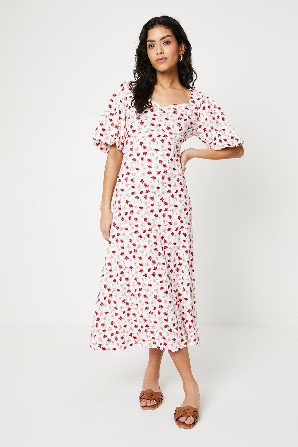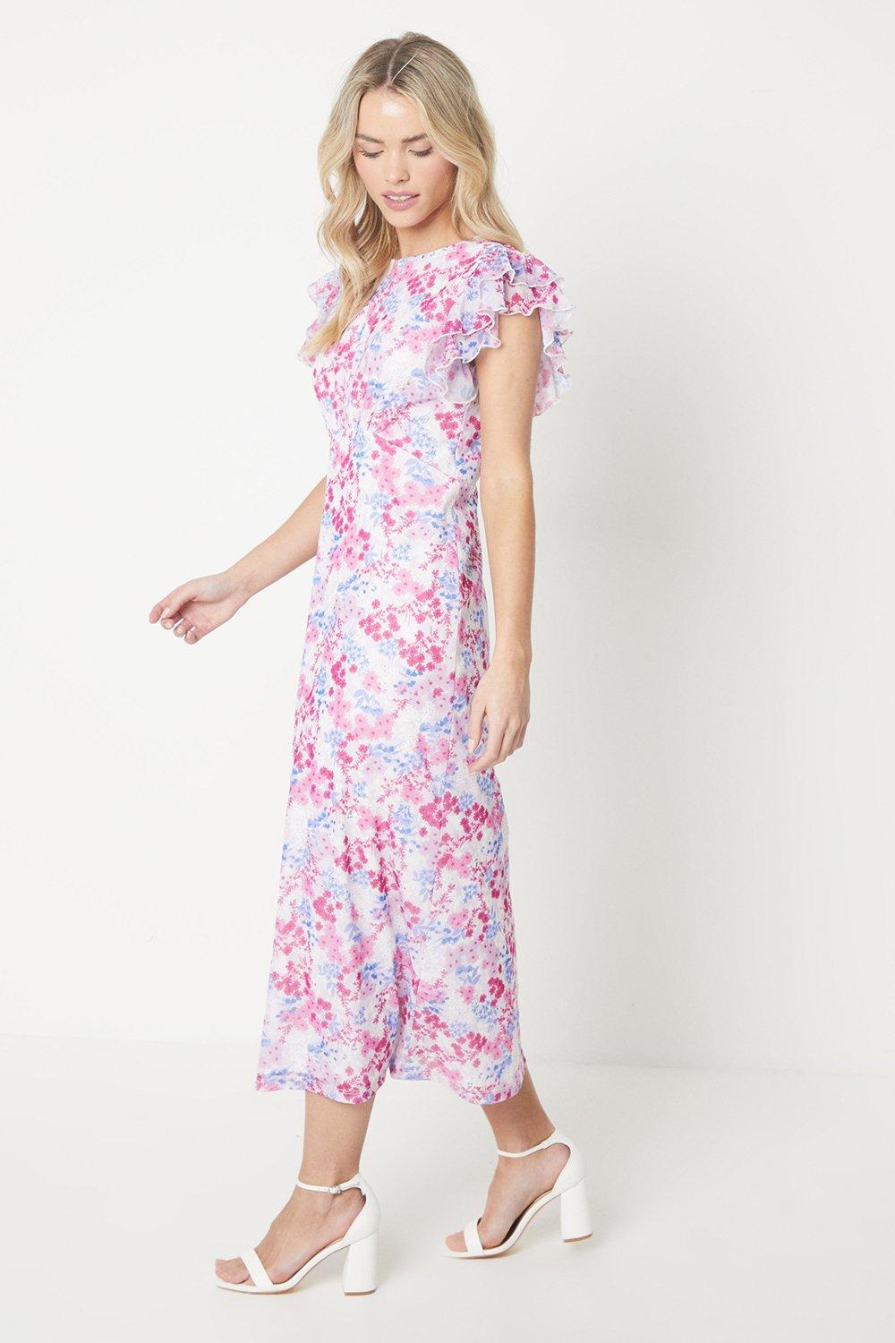 Save 50% Womens Green Ditsy Square Neck Tiered Flutter Sleeve Midi Dress Dorothy Perkins £35.00 £17.50