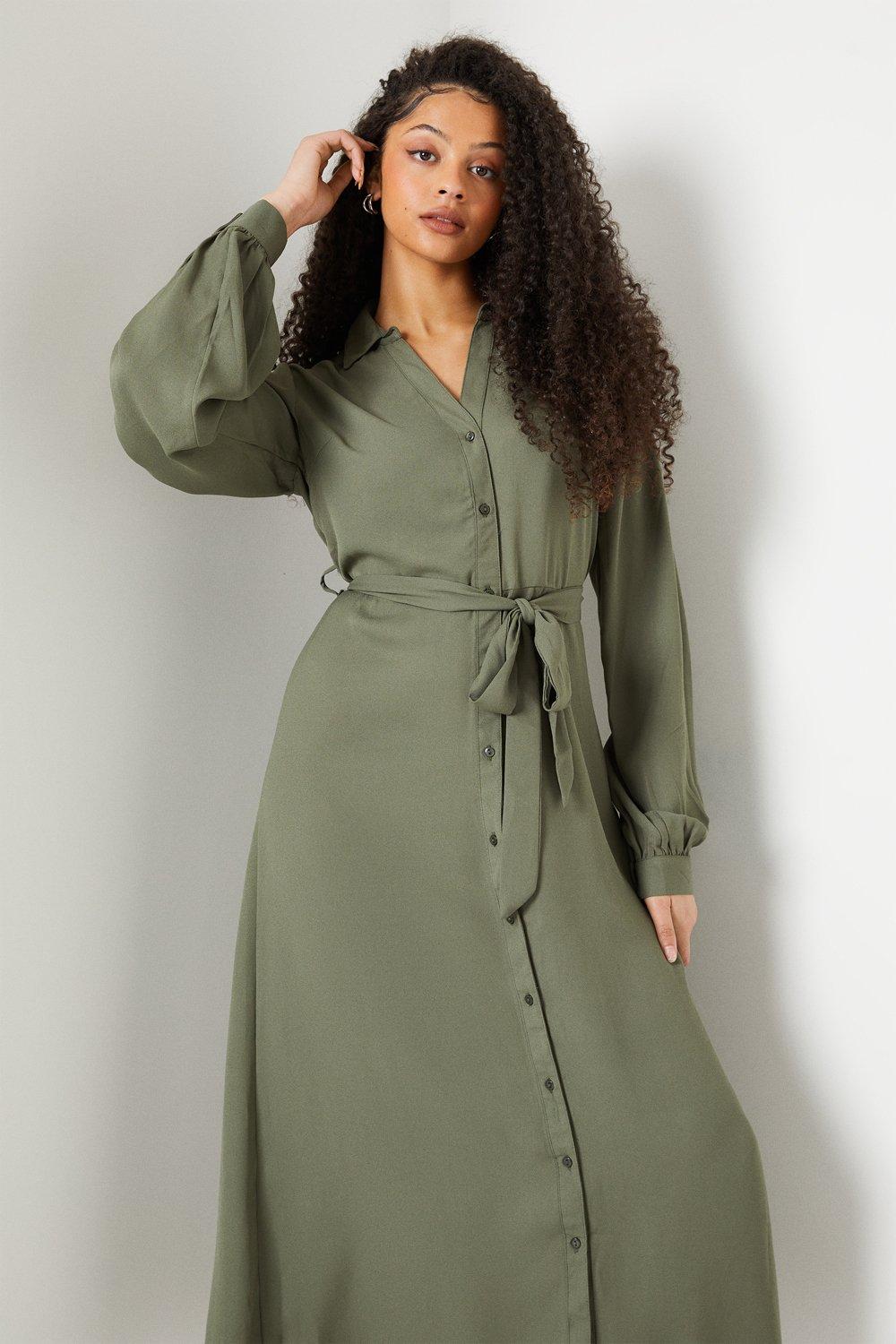 Save 20% Womens Petite Green Animal Ruched Front Puff Sleeve Midi Dress Dorothy Perkins £35.00 £28.00