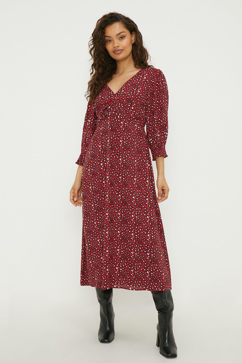 Save 60% Womens Petite Black Floral Ruched Front Shirred Cuff Midi Dress Dorothy Perkins £39.00 £15.60
