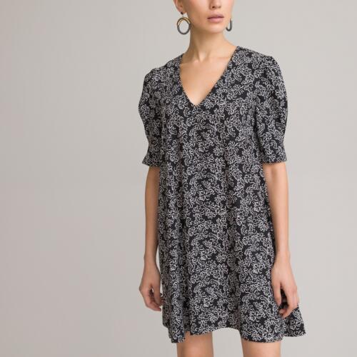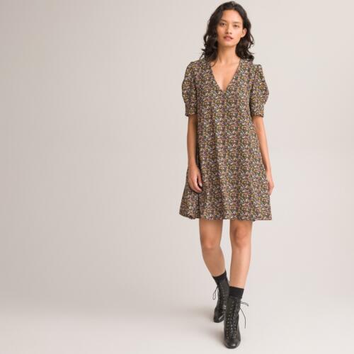 Recycled Full Mini Dress with Short Puff Sleeves and V-Neck La Redoute Collections £54.00 -