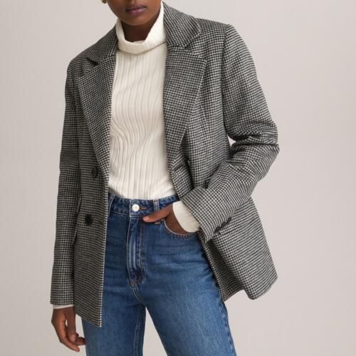 Recycled Mid-Length Coat in Houndstooth Check La Redoute Collections £38.50 -