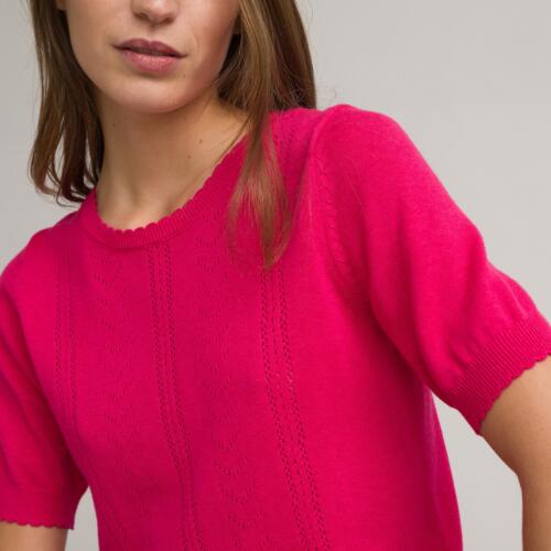 Recycled Cotton Mix Jumper in Fine Pointelle Knit with Short Sleeves La Redoute Collections £35.00 -