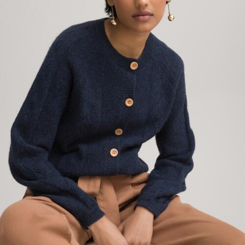Recycled Buttoned Cardigan with Crew Neck La Redoute Collections £25.60 -