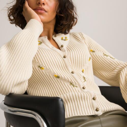 Recycled Puff Sleeve Cardigan with Embroidered Flowers La Redoute Collections £48.75 -