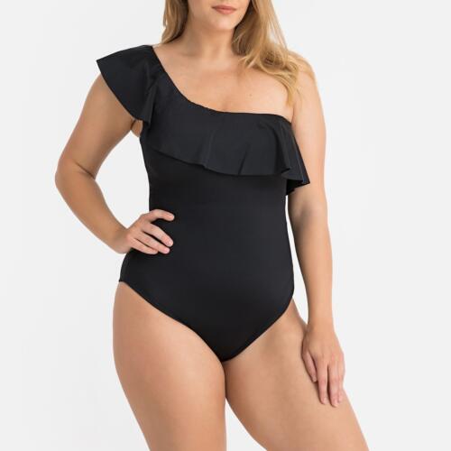 Recycled Asymmetric Shaping Swimsuit with Ruffles La Redoute Collections Plus £32.50 -