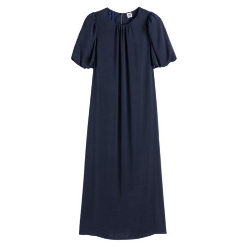 Recycled Full Midaxi Dress with Short Puff Sleeves and a Crew Neck La Redoute Collections £65.00 -