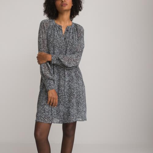 Recycled Floral Mini Dress with Crew Neck and Long Balloon Sleeves La Redoute Collections £65.00 -