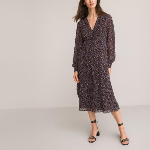 Printed Recycled Midaxi Dress with V-Neck and Long Sleeves La Redoute Collections £75.00 -