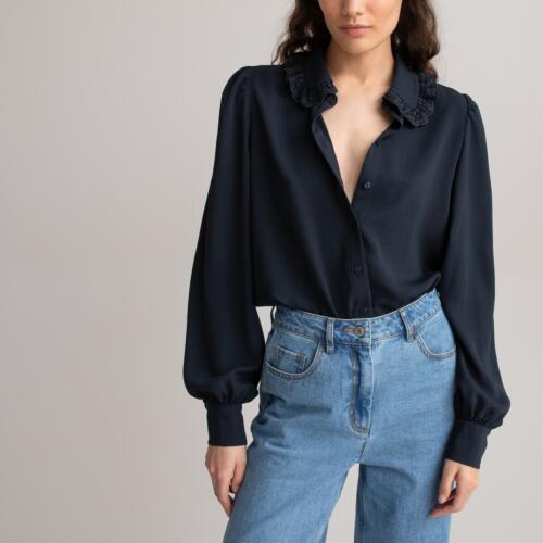 Recycled Long Sleeve Shirt with Ruffled Peter Pan Collar La Redoute Collections £26.00 -
