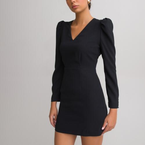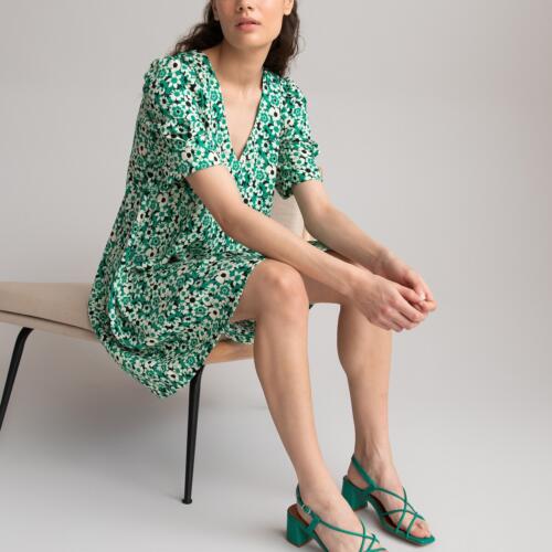 Recycled Mini Dress with Short Puff Sleeves and V-Neck La Redoute Collections £34.50 -