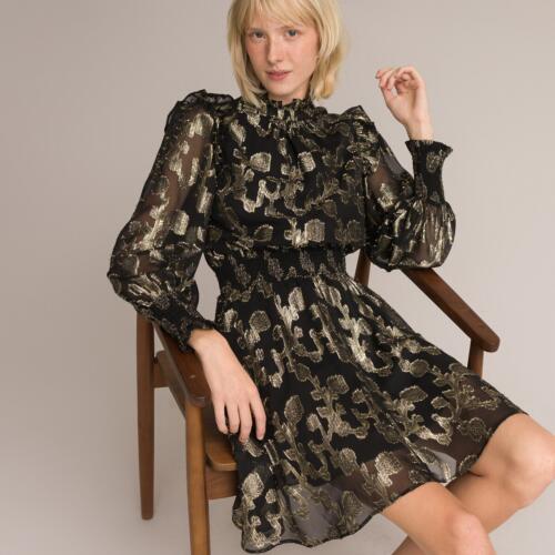 Recycled Ruffled Dress in Metallic Jacquard La Redoute Collections £30.00 -