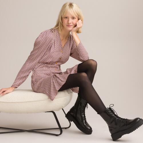 Recycled Printed Mini Dress with V-Neck and Long Sleeves La Redoute Collections £29.00 -