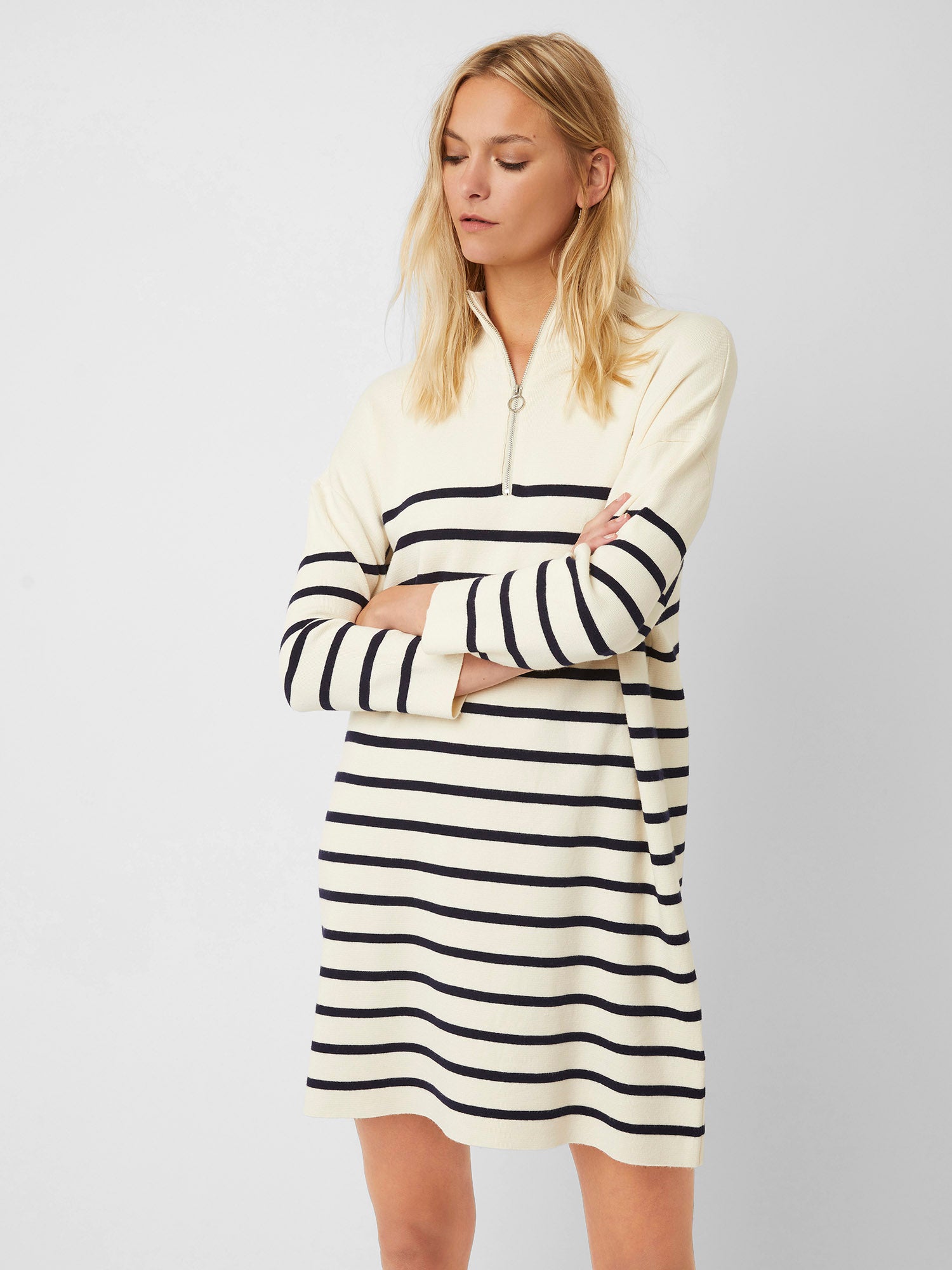 Cordell Striped Zip-Neck Dress Cream/Dark Navy Great Plains £34.00 -