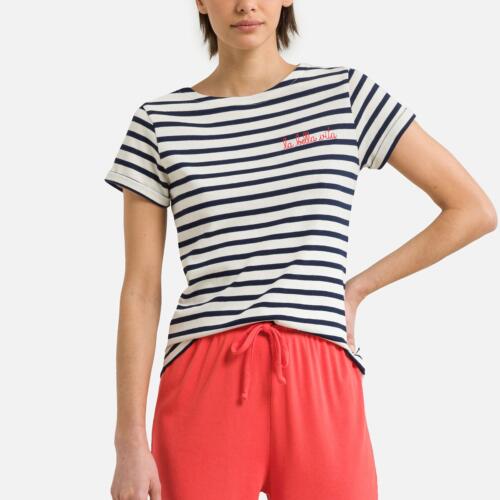 Colombier Organic Cotton T-Shirt in Breton Striped Print with Crew Neck Maison Labiche £78.00 -