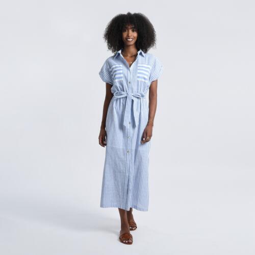 Striped Midi Shirt Dress in Cotton Mix with Belt Molly Bracken £48.45 -