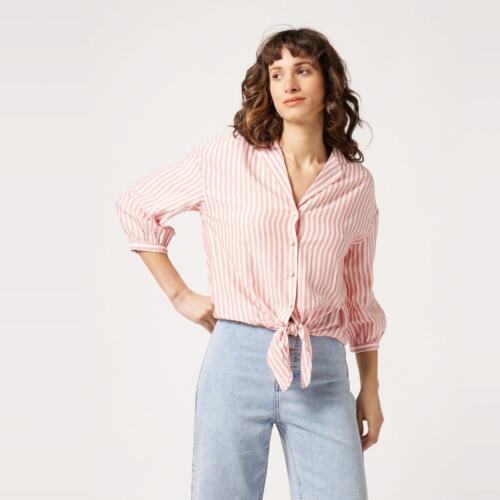 Striped Tie-Hem Blouse with 3/4 Length Sleeves Naf Naf £36.00 -