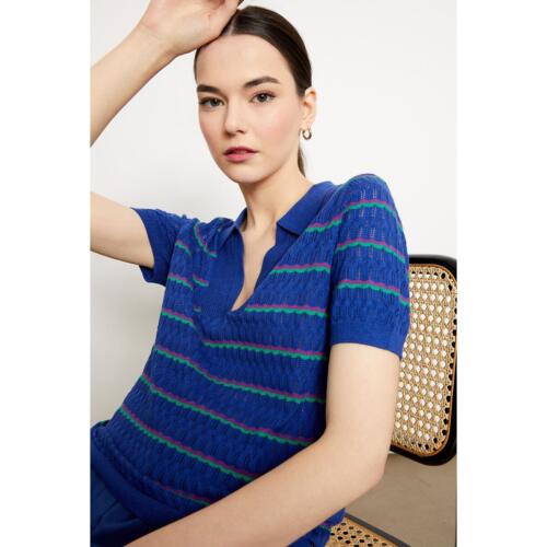 Silvano Striped Polo Jumper in Cotton/Silk Ekyog £94.50 -