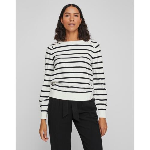 Breton Striped Jumper in Cotton Mix with Button Detail Vila £23.10 -