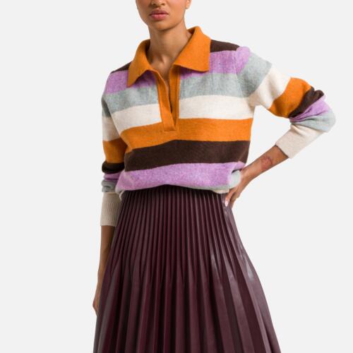 Pinata Striped Polo Jumper with V-Neck in Fine Knit Suncoo £81.00 -