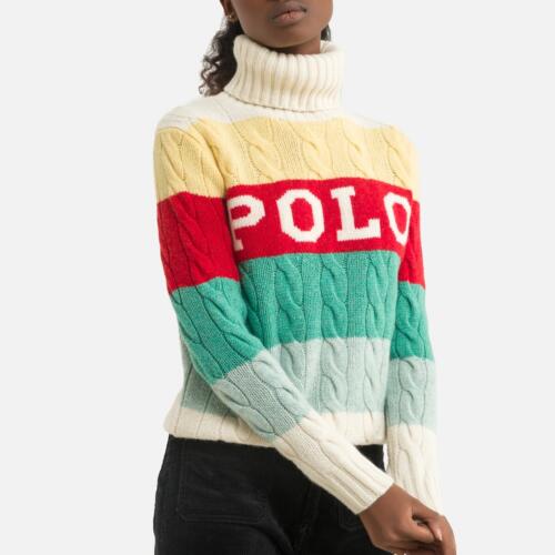 Striped Wool Turtleneck Jumper in Cable Knit Polo Ralph Lauren -