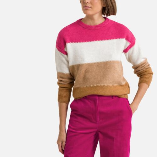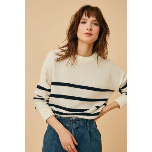 Breton Striped Jumper in Merino Wool Mix and Fine Knit with Crew Neck Anne Weyburn £34.00 -
