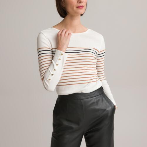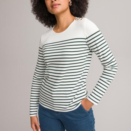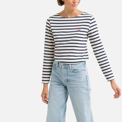 Breton Striped Cotton T-Shirt with Crew Neck and Long Sleeves Anne Weyburn £29.90 -