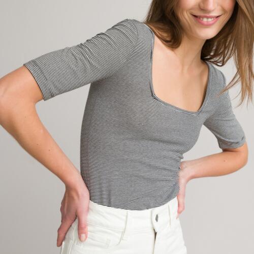 Striped Cotton T-Shirt with Square Neck La Redoute Collections £18.00 -
