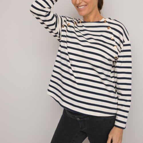 Breton Striped Maternity T-Shirt in Cotton with Long Sleeves La Redoute Collections £22.75 -