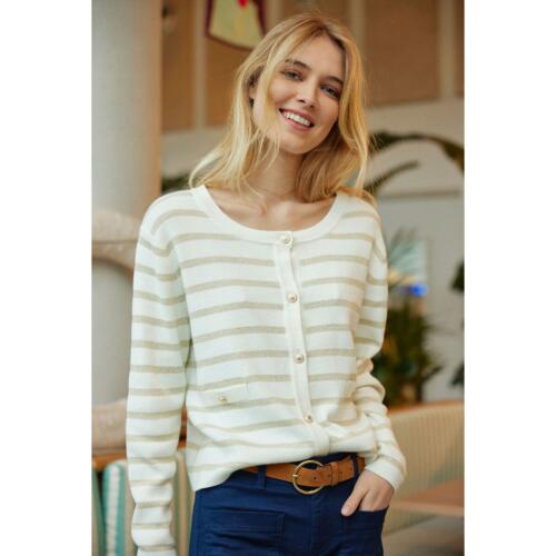 Noora Striped Cardigan in Cotton Mix with Scoop Neck La Petite Etoile £47.60 -