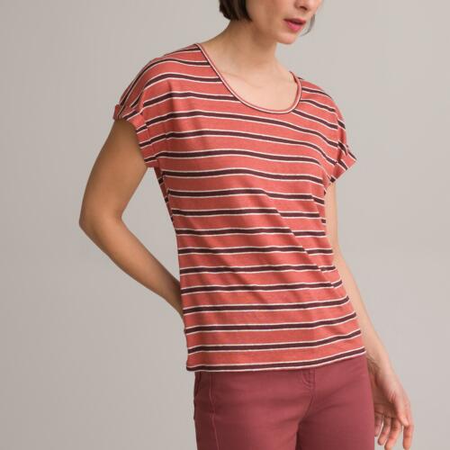 Striped Linen T-Shirt with Scoop Neck and Short Sleeves Anne Weyburn £26.00 -