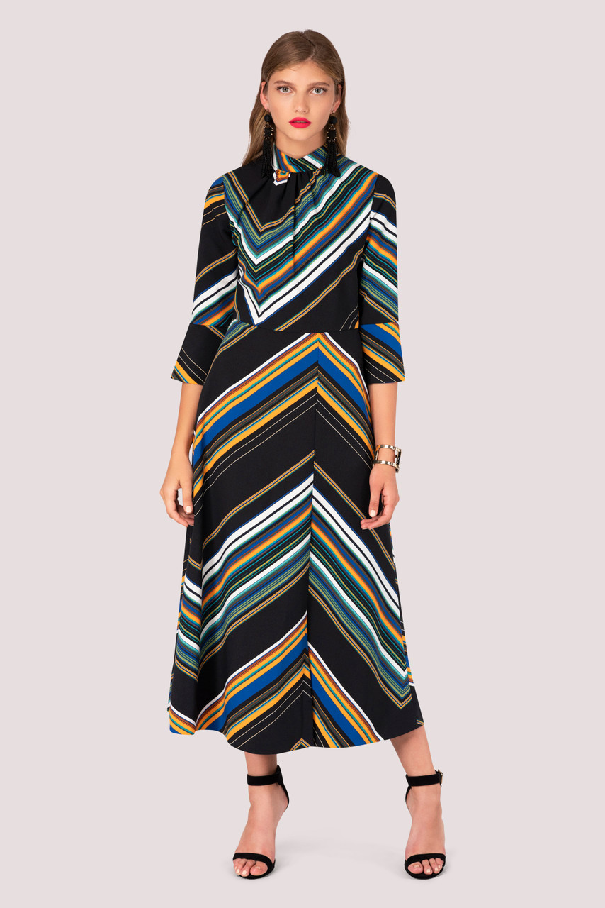 Black Stripe Trumpet Sleeve Tie Neck Dress Closet LondonSave 50%£30.00