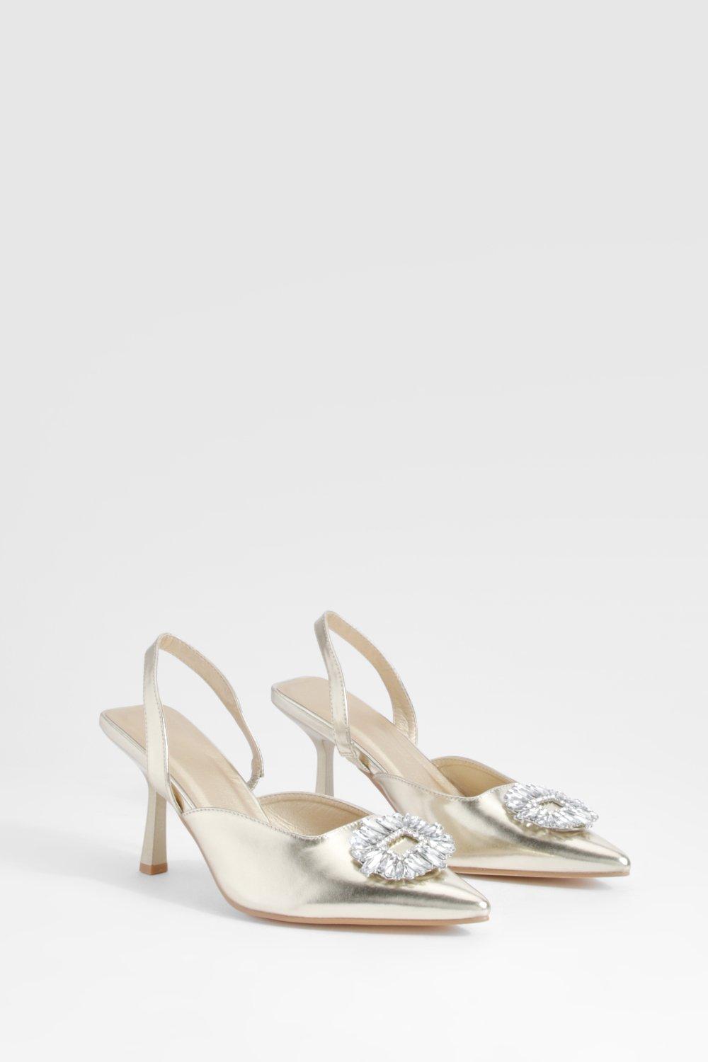 Boohoo Womens Embellished Slingback Metallic Court Heels