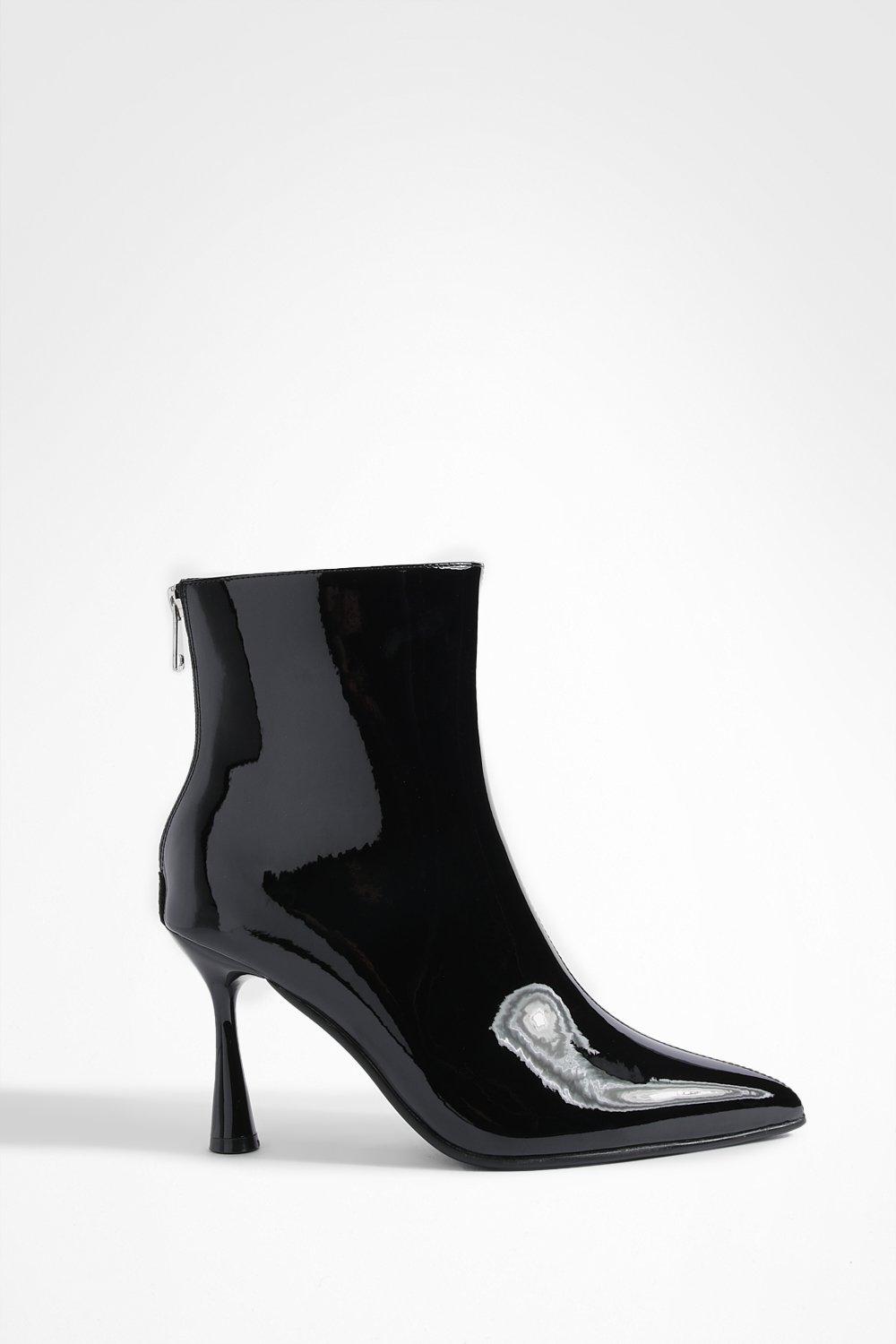 Boohoo Womens Wide Fit Flare Stiletto Patent Pointed Ankle Boots