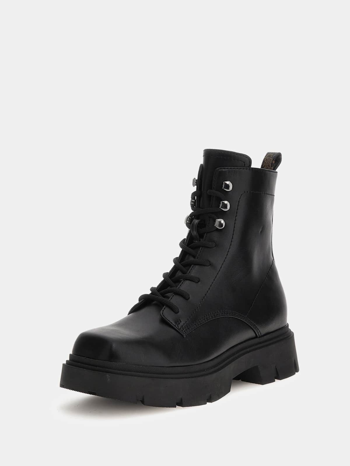 Faux leather ankle boots.Round toe.Heel height 3.8 cm / 1‚5 in.Rubber sole height 2.5 cm / 1 in.Lace-up model.Combat boot model.Top composition: 100% Polyurethane.Leather insole.Fabric lining.Rubber sole.Leg height: 14 cm / 5‚5 in.Leg circumference: 24 cm / 9‚4 in.