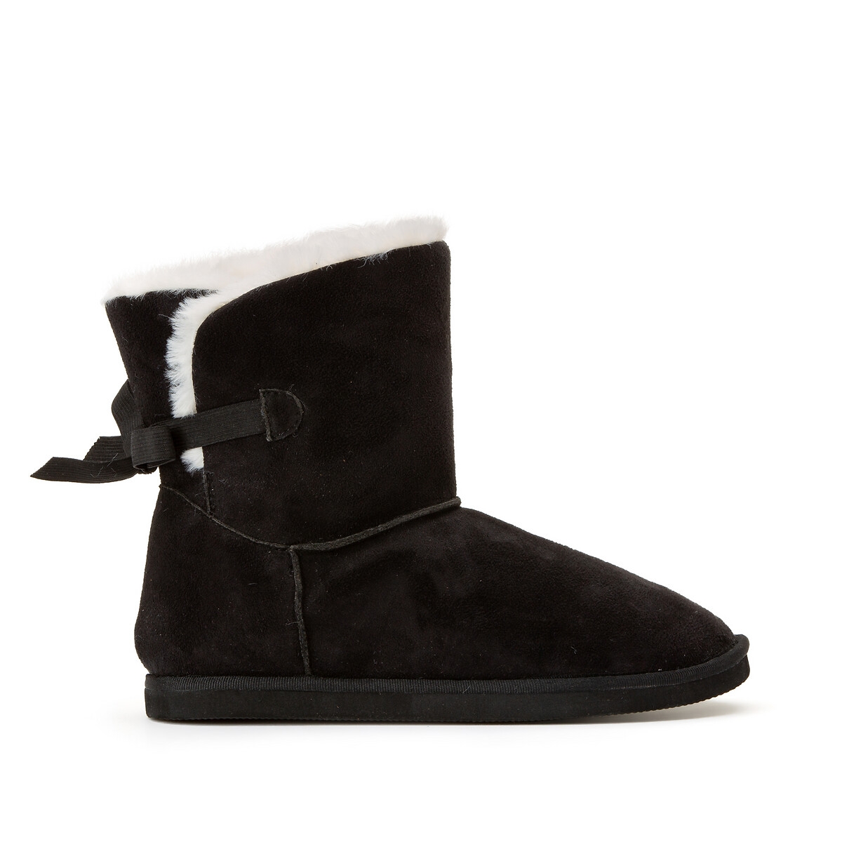 La Redoute Collections Faux Fur-Lined Ankle Boots with Flat Heel and Bow Trim