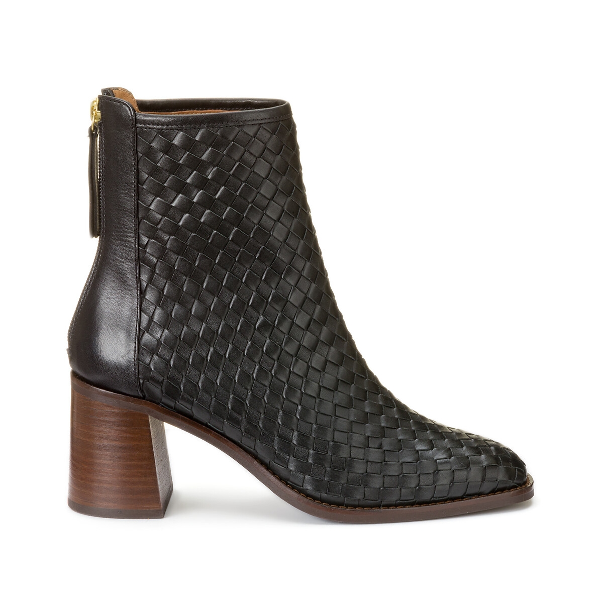 La Redoute Collections Leather Plaited Ankle Boots with Block Heel