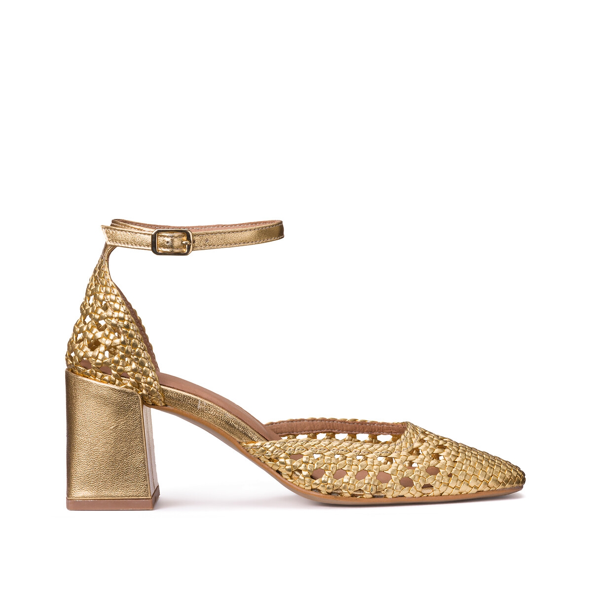 La Redoute Collections Leather Plaited Sandals with Block Heel