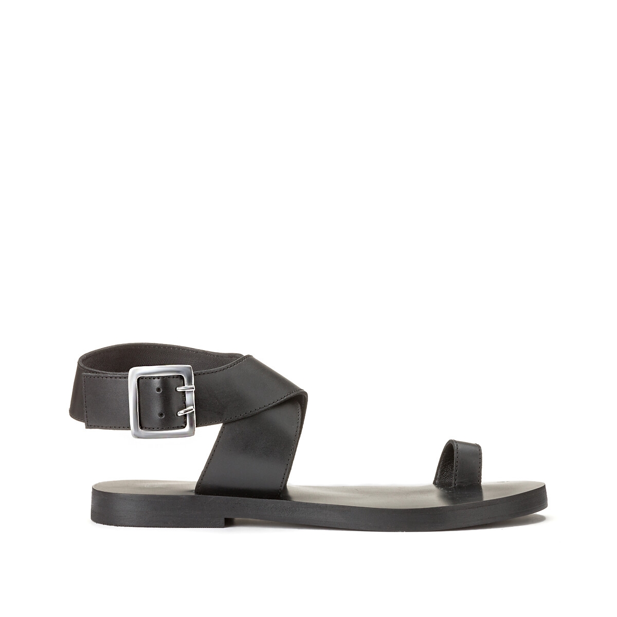 La Redoute Collections Leather Toe Post Sandals with Buckle Detail