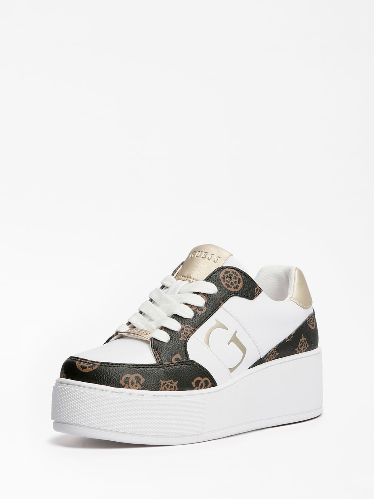 Introducing the Guess Neiman 4G Logo Sneaker, a must-have addition to your footwear collection. Crafted from synthetic material, this sneaker offers both style and durability. Its round toe design provides a comfortable fit, while the crêpe sole with a height of 5.5 cm adds a trendy touch.