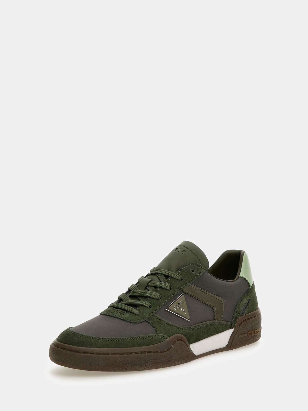 Introducing the Guess Olbia Leather-Insert Sneakers, a versatile and stylish addition to your shoe collection. These sneakers feature a unique mix of leather materials, including suede inserts, giving them a trendy and sophisticated look. With a round toe and lace-up model, these sneakers provide a comfortable fit that is perfect for all-day wear.