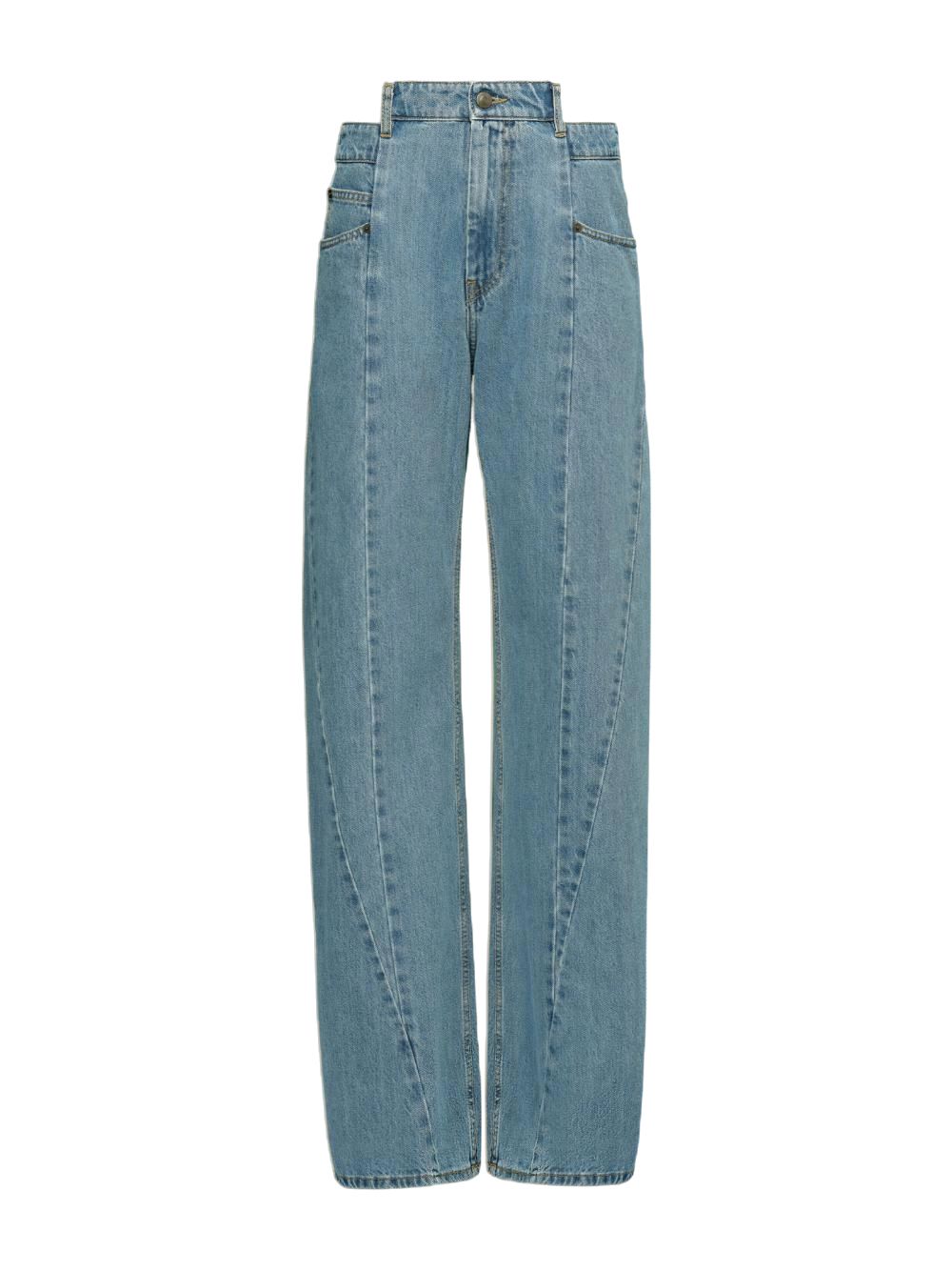 Maison Margiela Décortiqué Denim Jeans Blue The classic denim jean has been reworked with a cut-out waistband and panel detailing for an elongated effect. This stonewashed, cotton pair offers a relaxed fit with full-length straight legs. Five pockets and belt loops are met with a contrasting topstitch. Highlights Denim trousers Décortiqué details Regular waist Wide leg Belt loops Zip closure Stone washed treatment Four stitches at the back Composition Cotton 100% Product ID: S51LA0128S30617-966 Season: PS25 Collection