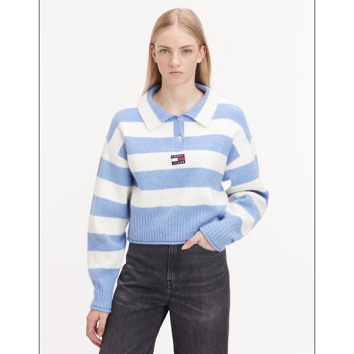 Tommy Jeans Striped Polo Jumper with Logo on the Front