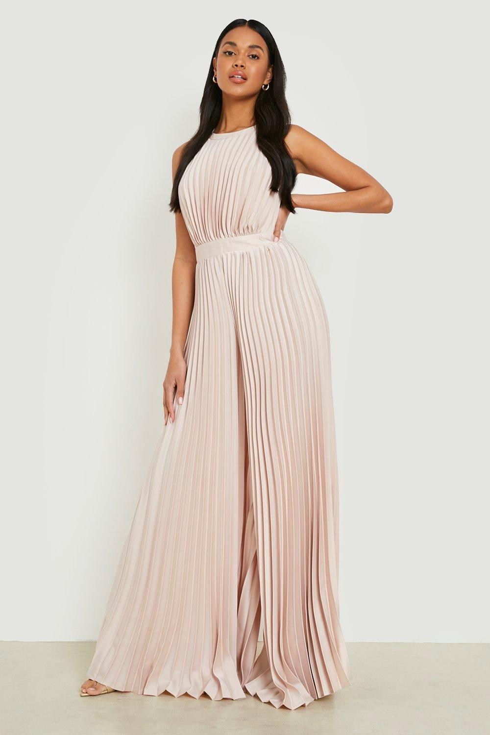 Boohoo Womens Pleated High Neck Wide Leg Jumpsuit