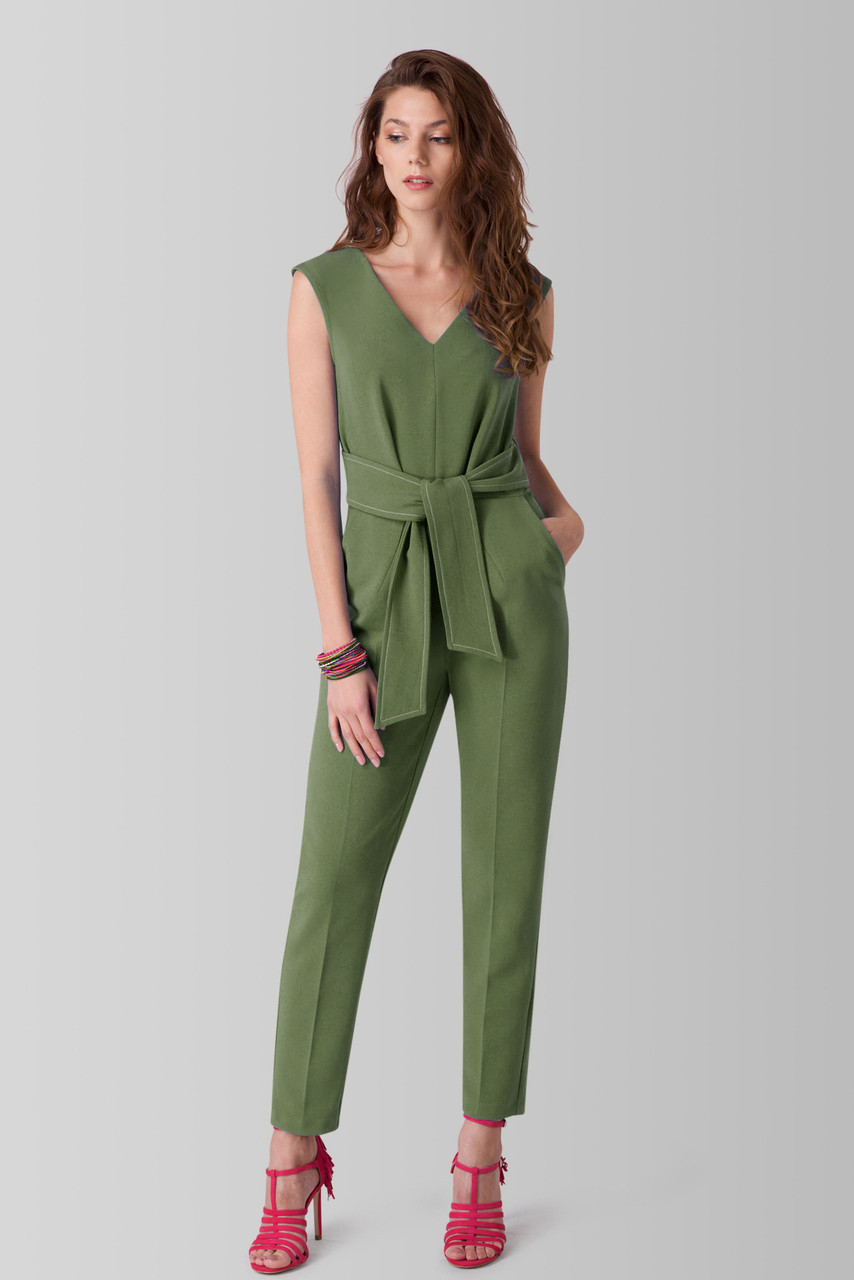 Closet London Khaki Green V-Neck Front Tie Jumpsuit