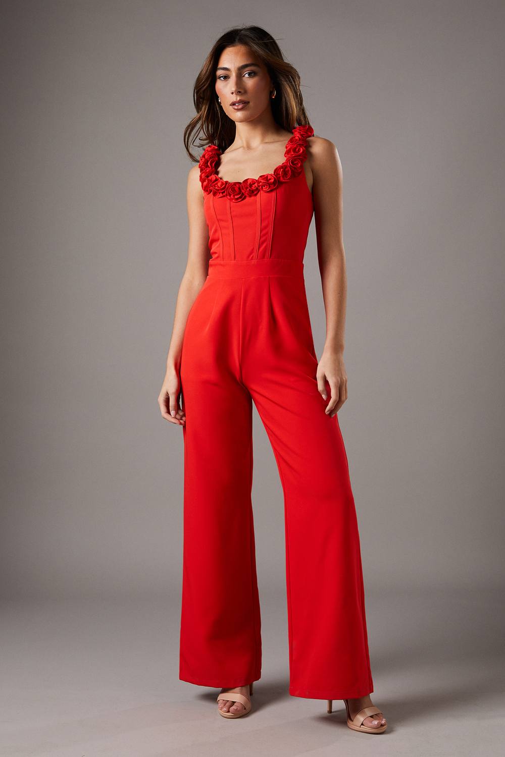 Striking rosette trim adorning the neckline Flattering structured bodice with vertical seam detailing Elegant wide-leg silhouette for a graceful flow Sleeveless design with a square back Crafted from smooth crepe fabric for a polished look Make a lasting impression at your next special occasion with this exquisite Rosette Trim Jumpsuit from Coast. The eye-catching rosette embellishment framing the neckline adds a touch of romance and sophistication, whilst the structured bodice with its vertical seams creates a figure-flattering silhouette. The wide-leg design offers both comfort and elegance, allowing for graceful movement as you navigate formal events. Perfect for weddings, the races, or black-tie affairs, this jumpsuit can be styled with strappy metallic heels and a clutch bag for a refined ensemble. For cooler evenings, drape a tailored blazer over your shoulders to complete the look. This versatile piece from Coast embodies timeless elegance, ensuring you stand out for all the right reasons at any sophisticated gathering.