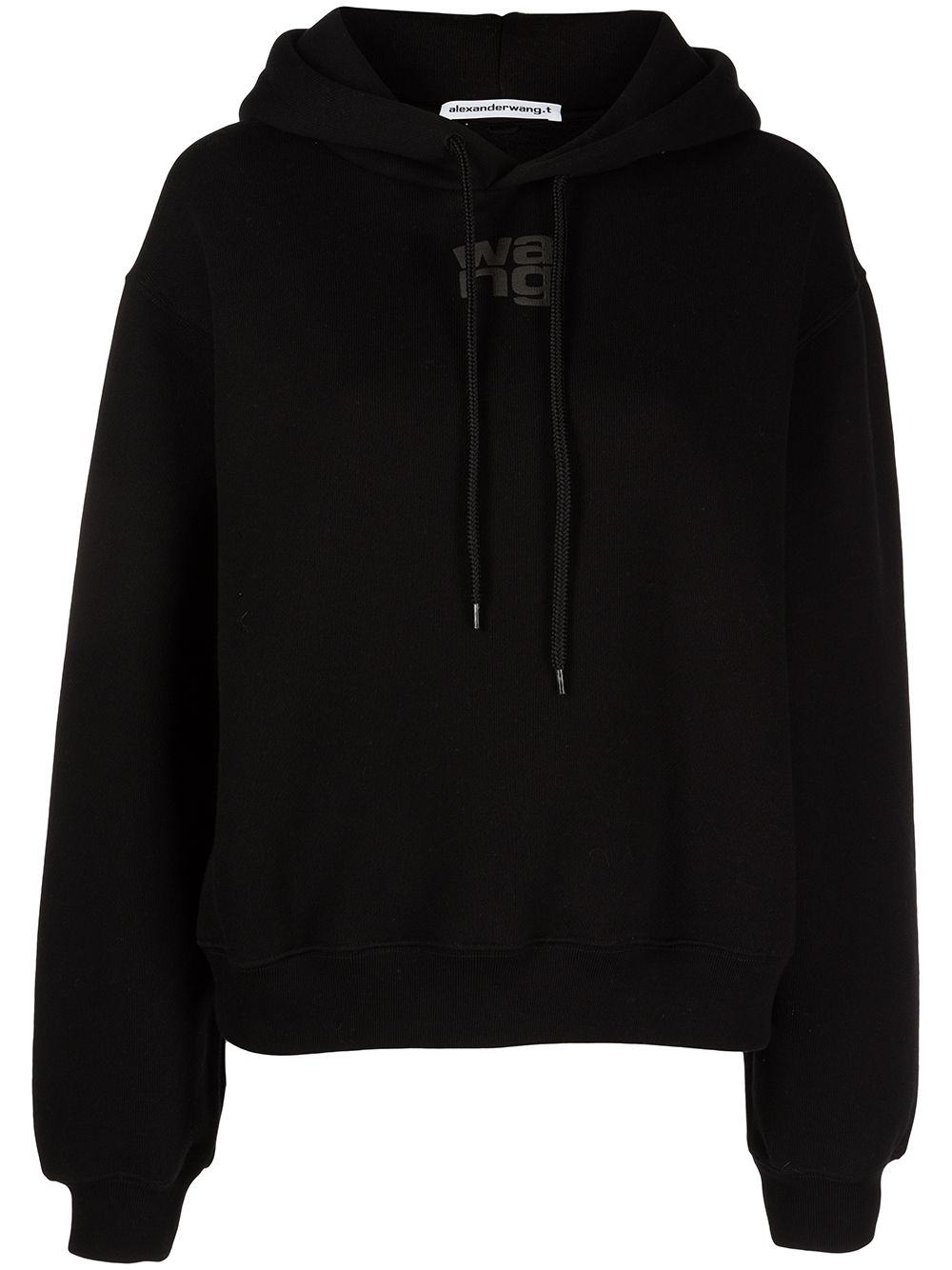 Alexander Wang rubberised logo cotton hoodie drawstring hood long sleeves elasticated cuffs elasticated hem rubberised logo Designer ID: 4CC2333069001 Composition: Cotton 100%