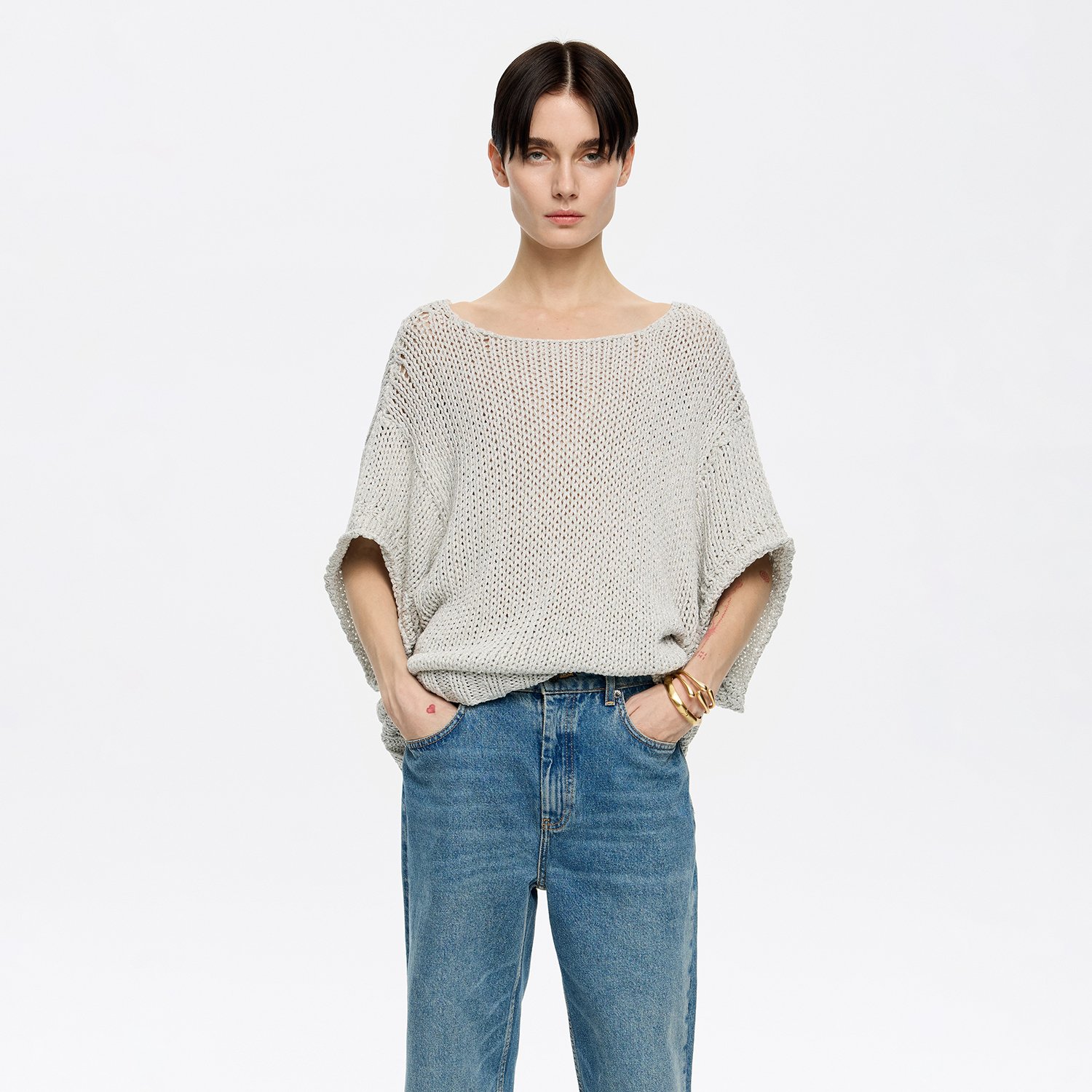 Long sweater Oversize cut Boat neck Short, wide sleeves