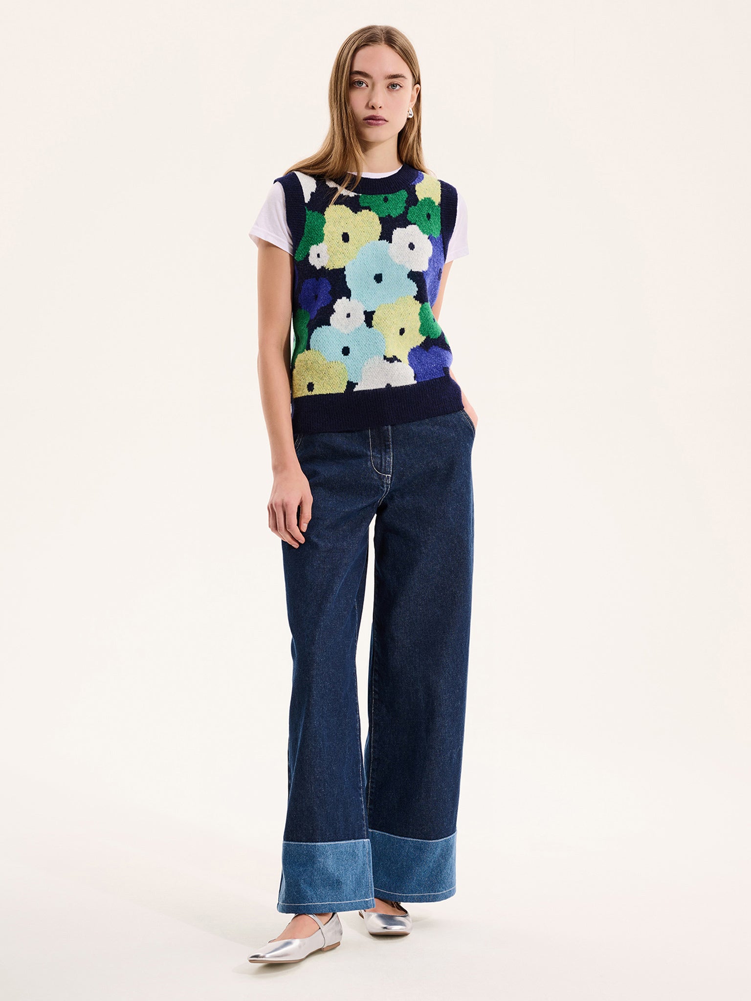 The quintessential sweater vest, add a pop of colour to your wardrobe with our Bobbi vest in an oversized blurred floral print. Woven from soft yarns in cool tones of blues and greens, it is woven from recycled polyester. Bobbi is ready to be loved and layered.