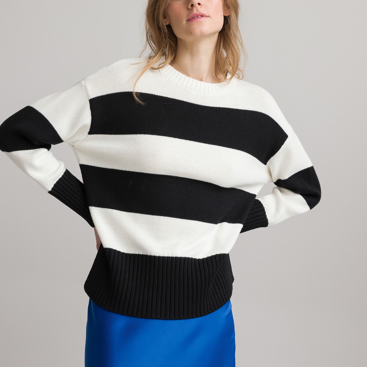 La Redoute Collections Striped Cotton Mix Jumper with Crew Neck